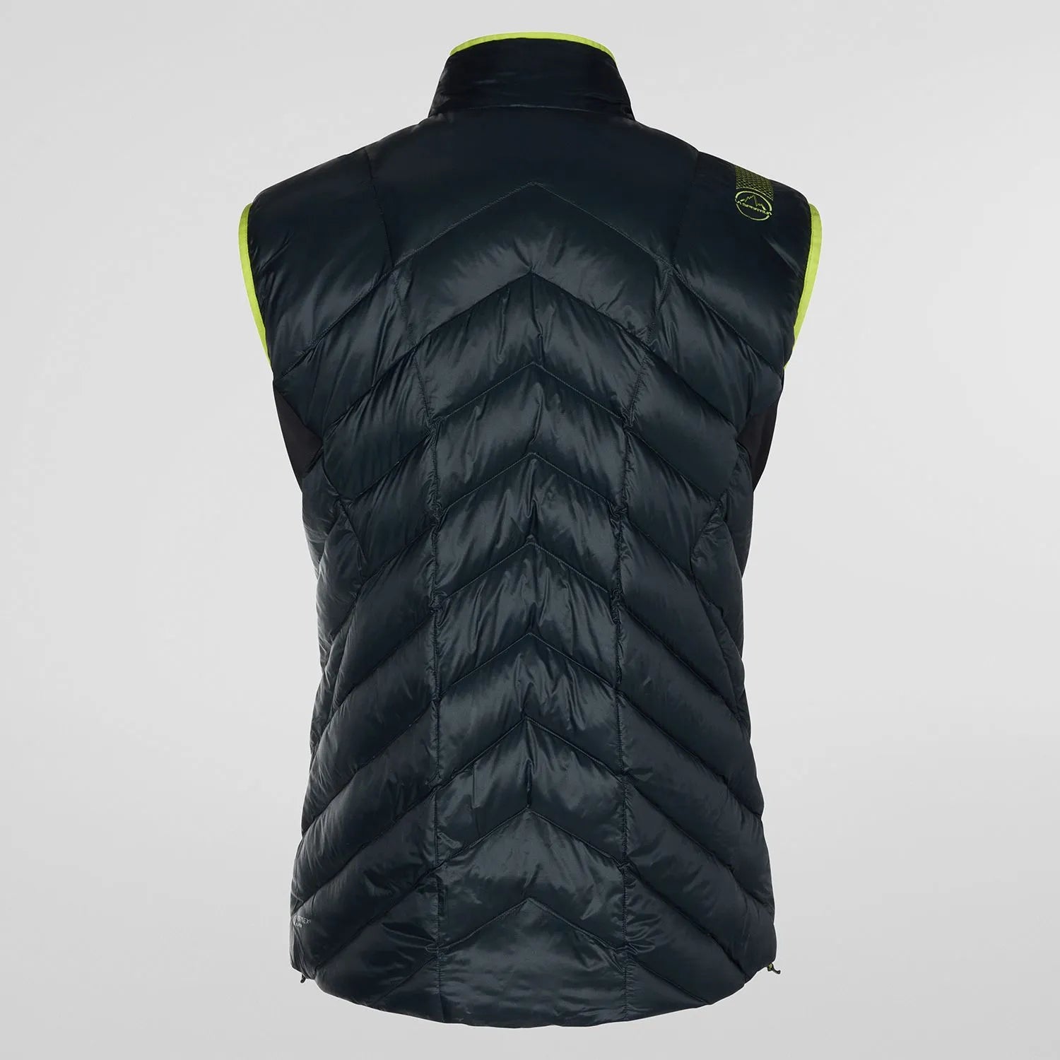 Gilet imbottito in piuma riciclata, studiato appositamente per l'alpinismo tecnico e classico. Mix di materiali che garantiscono massima leggerezza, comprimibilità, calore e libertà di movimento.