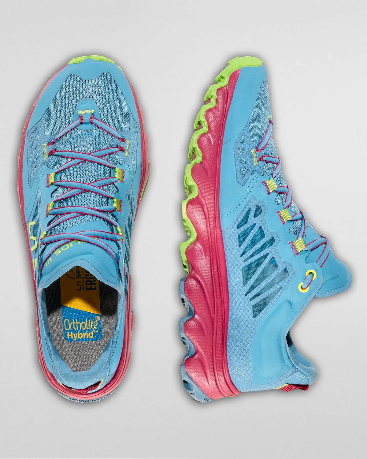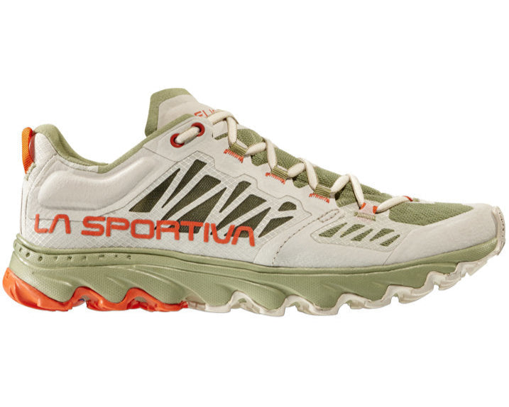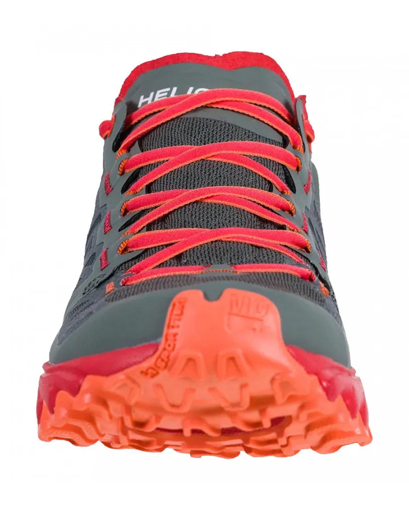 Helios III è la calzatura “door to trail” concepita per allenamenti e corse su terreni duri off-road. È un prodotto a vocazione Atlheisure con tomaia leggera e traspirante realizzata con una combinazione unica e termoadevisizzata di tessuto rip-stop, retina monobava, sandwich mesh e rinforzata in TPU. La calzata è estremamente comoda ed avvolgente, derivata dal modello Helios SR. La presenza del contrafforte sul tallone evita schiacciamenti in fase di calzata mentre il collarino avvolgente e morbido con cuscinetti in 3D Foam garantiscono un perfetto comfort di calzata. Il battistrada è in mescola ad alta durabilità FriXion Blu: perfetto per utilizzi su terreni duri e rocciosi. Il puntalino termo-form sagomato contribuisce alla leggerezza generale del prodotto contribuendo anche alla protezione dagli urti frontali. L’intersuola in EVA ad iniezione con tecnologia MorphoDynamic garantisce l’elevata ammortizzazione tipica del modello Helios fin dal suo debutto sul mercato mentre l’inserto Cushoning Platform ne aumenta le proprietà ammortizzanti ed il comfort generale. Helios III: time to fly, again.