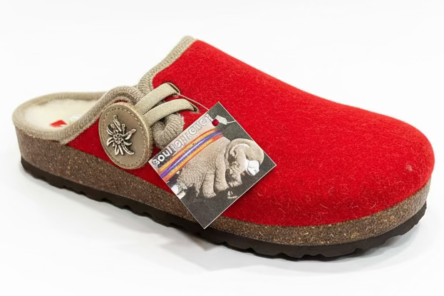 La tomaia delle pantofole è realizzata in pura lana merino di alta qualità, calda e morbida.