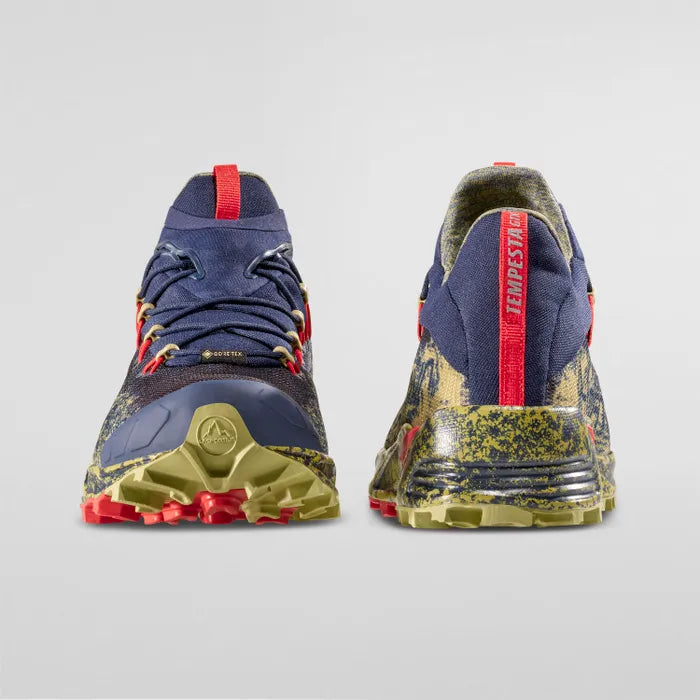 Calzatura leggera e impermeabile da Winter Running pensata per allenamenti ed utilizzo quotidiano nei mesi invernali in vista delle skyraces primaverili. Versatile, rapida da calzare e protettiva grazie alla costruzione Sock-Shield è perfetta per la corsa su diversi tipi di terreno off-road. La suola aderente permette di affrontare al meglio superfici scivolose e di mantenere il grip su terreni cedevoli o ghiacciati grazie ai tasselli pronunciati ed alla compatibilità con chiodi amovibili AT-Grip Spike. Il sistema di allacciatura rapido ed intuitivo con tasca porta laccio a scomparsa unito al collarino Sock-Shield a costruzione slip-on performante e confortevole con ghetta integrata per avvolgere il piede completamente senza volumi vuoti e soffietti aggiuntivi: evita totalmente l’entrata di sassi, fango e neve. Il sistema di allacciatura è integrato con la struttura della tomaia interna: tale soluzione permette di regolare i volumi ed il livello di aderenza al piede della calzatura per una corsa precisa e stabile anche sui traversi. La totale assenza di cuciture esterne e la membrana super flessibile, impermeabile e traspirante in GORE-TEX rendono Tempesta la calzatura perfetta per la preparazione atletica nei mesi invernali.